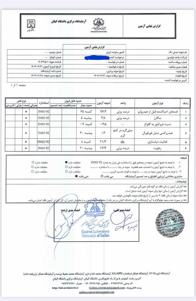 • ساکاروز کمتر از ۳٪؛ نشانهی خالص بودن عسل